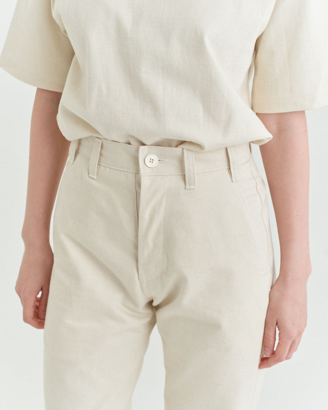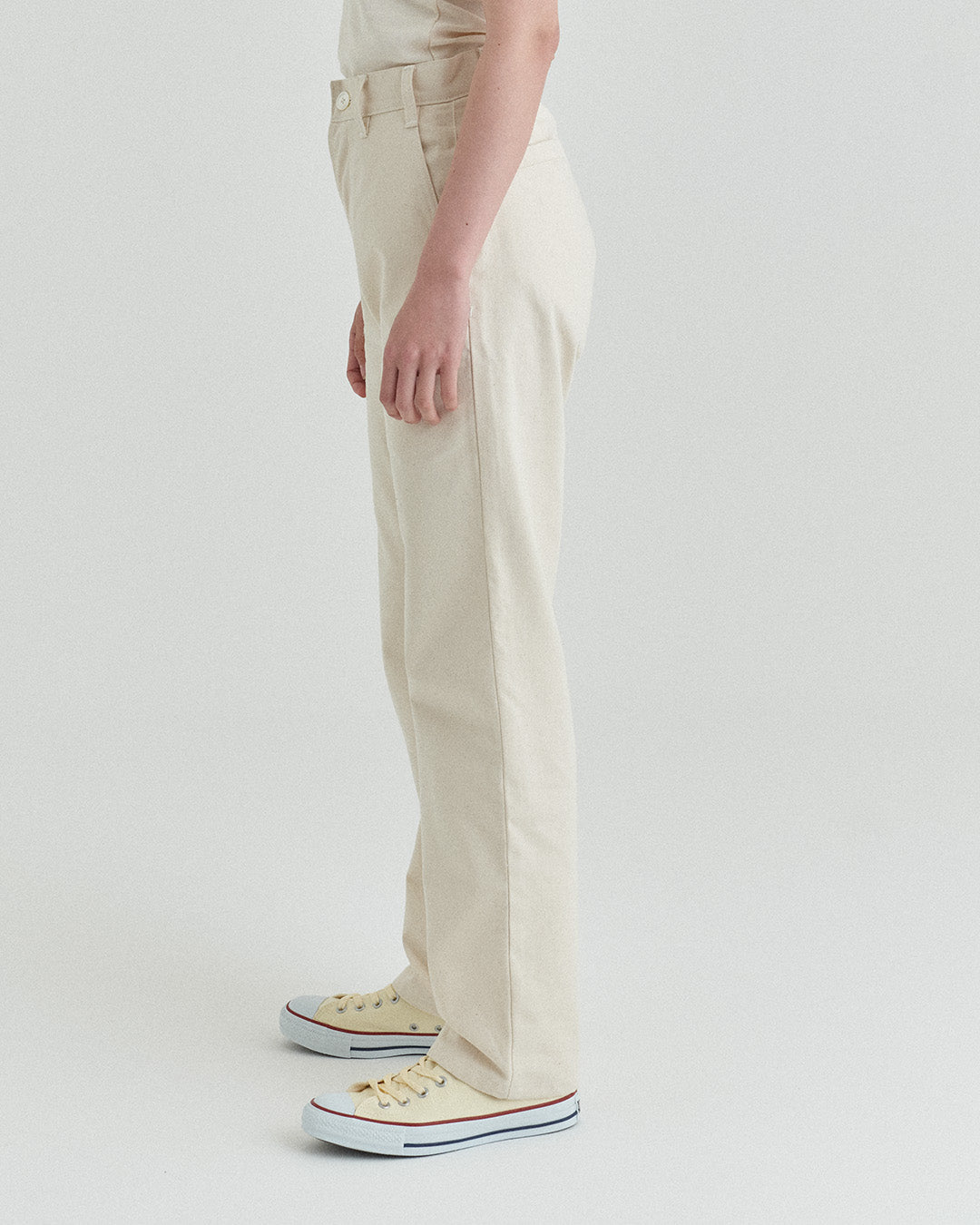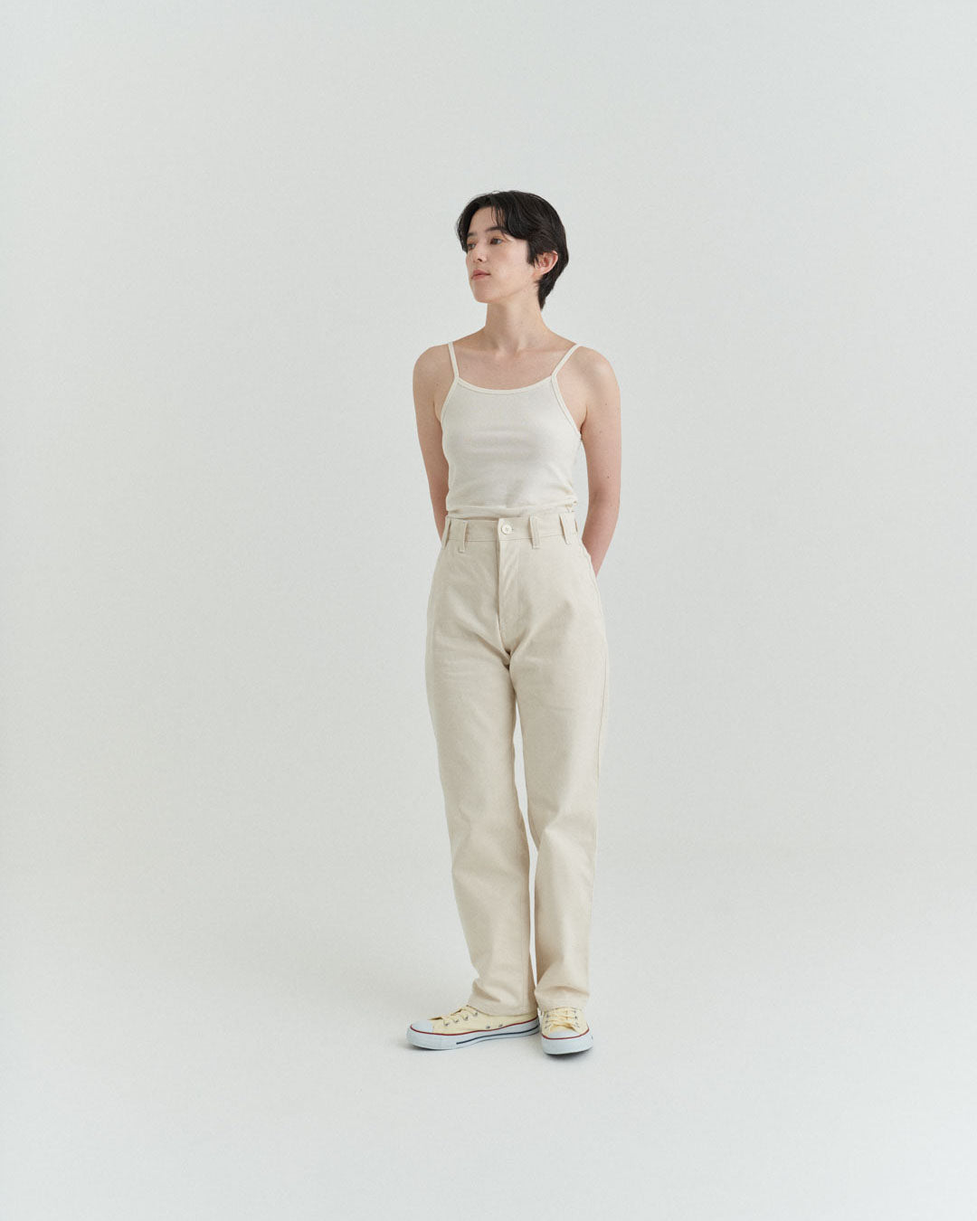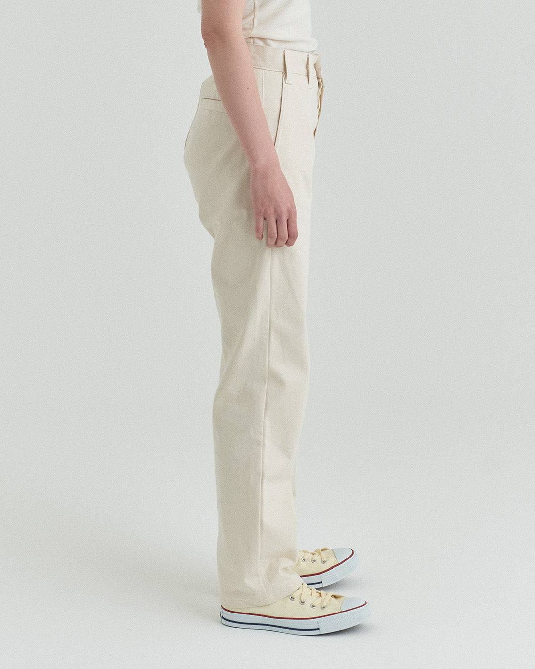 後ポケットはパッチポケットではなく片玉縁ポケットにして、すっきりとしたヒップ周り。