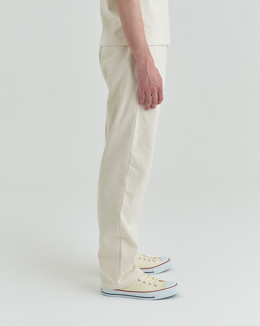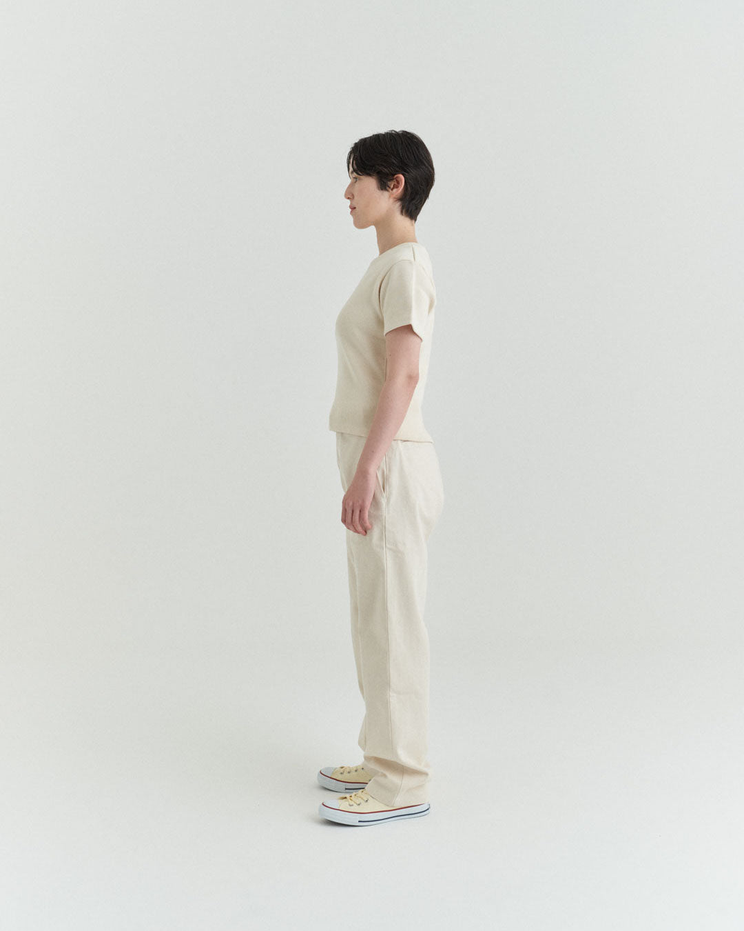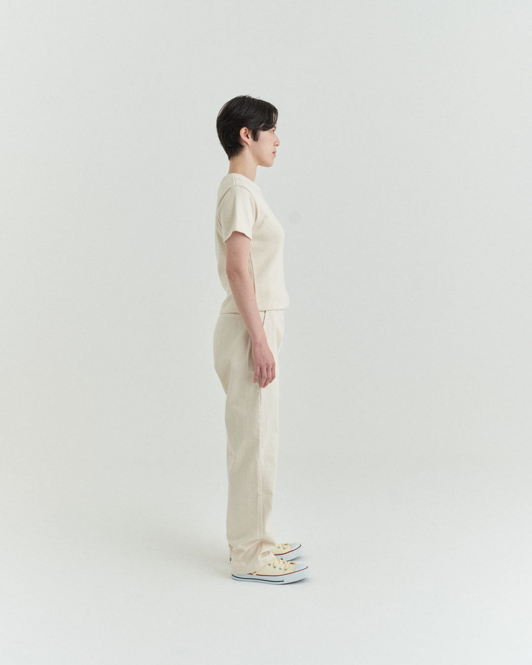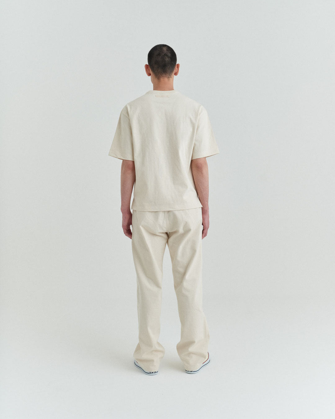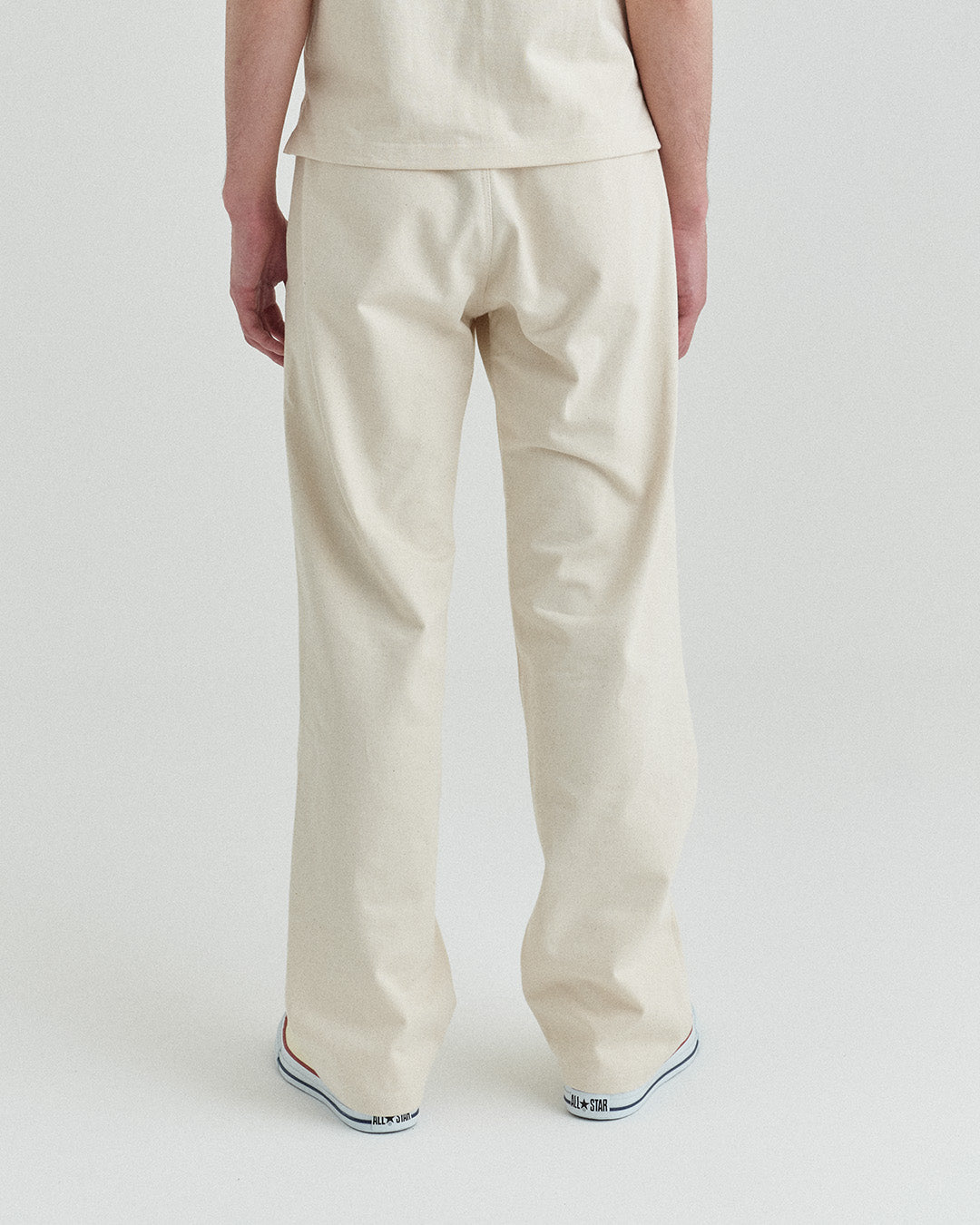 後ポケットはパッチポケットではなく片玉縁ポケットにして、すっきりとしたヒップ周り。