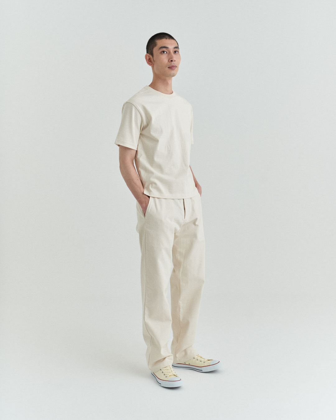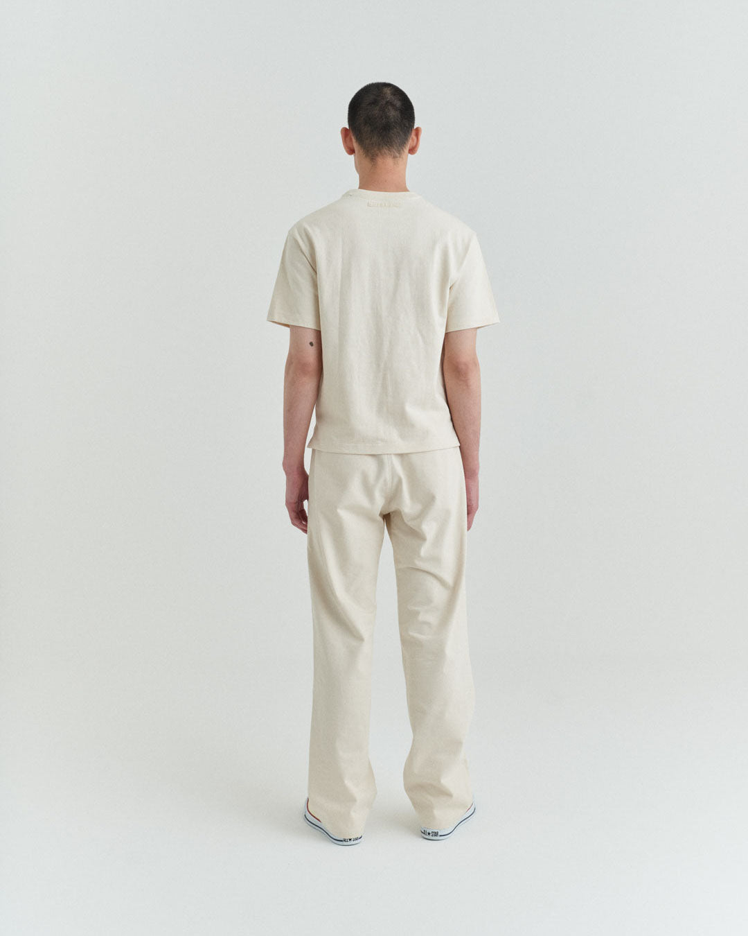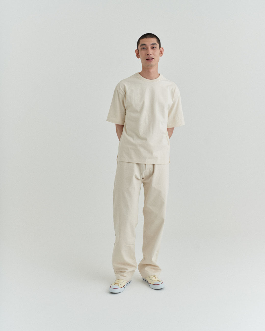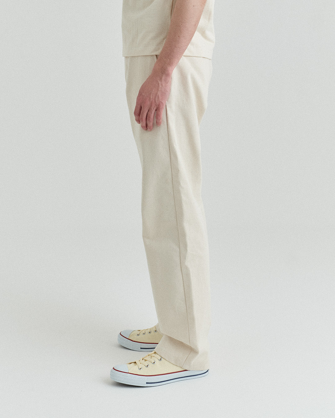 後ポケットはパッチポケットではなく片玉縁ポケットにして、すっきりとしたヒップ周り。