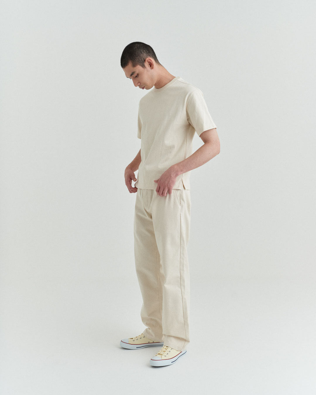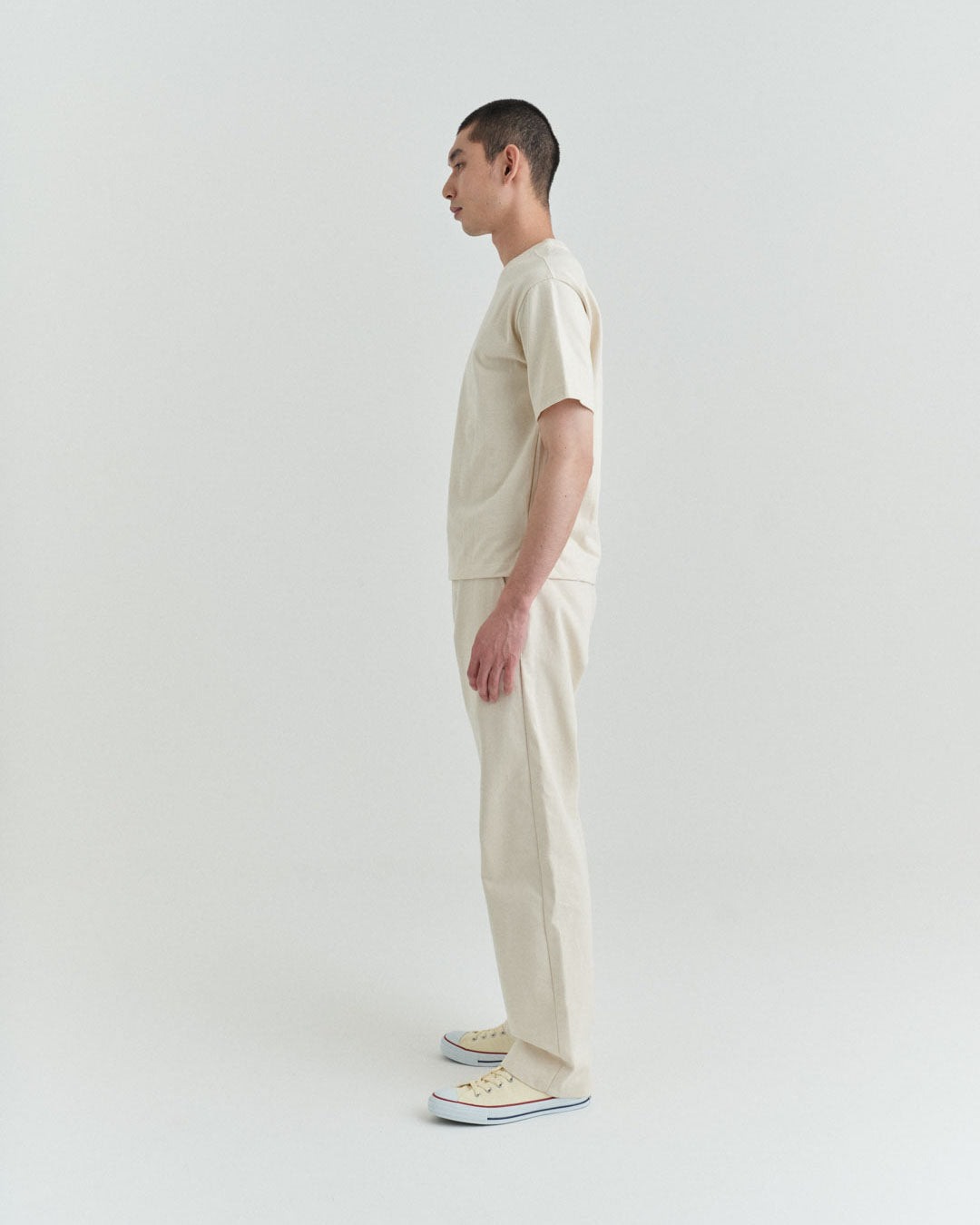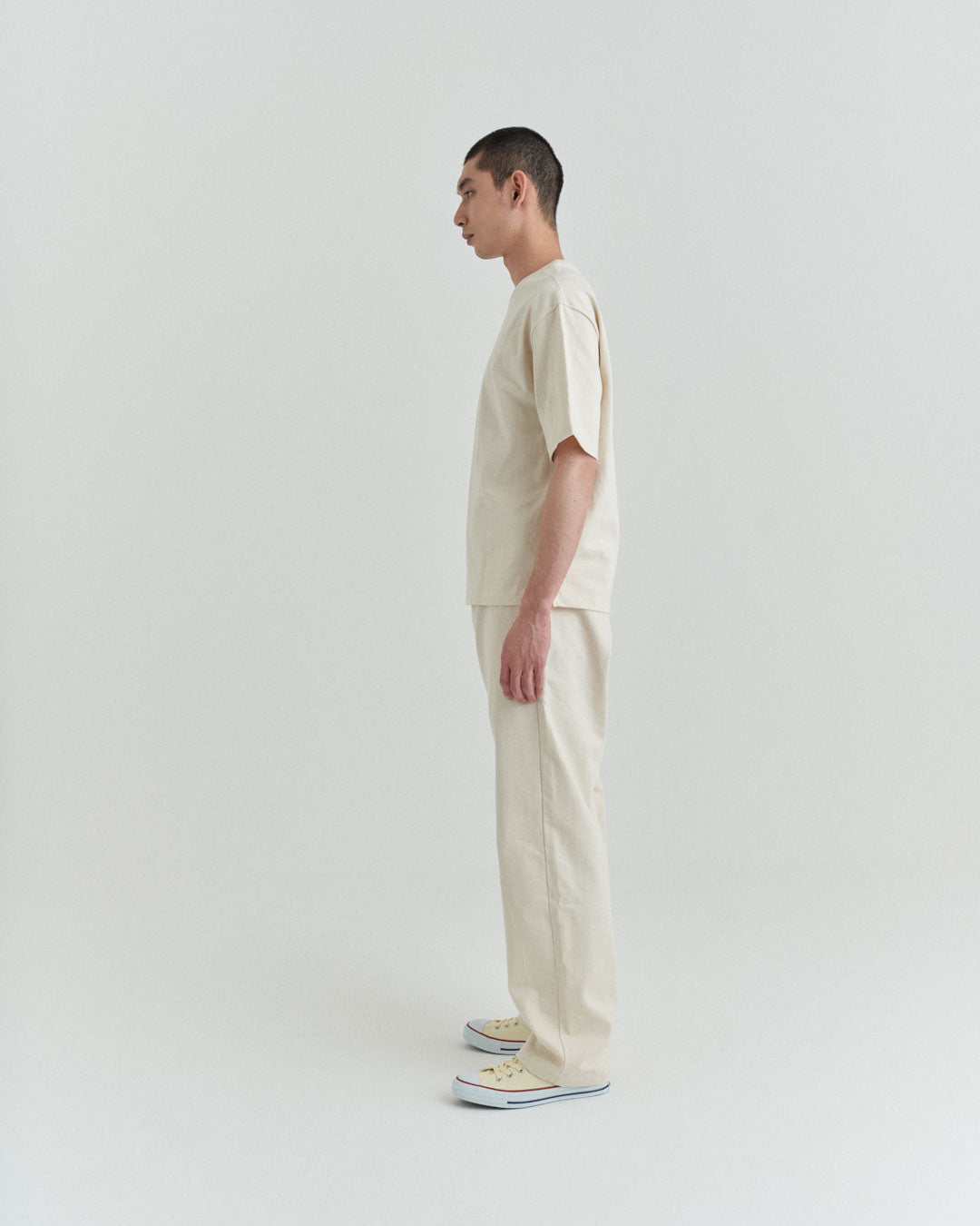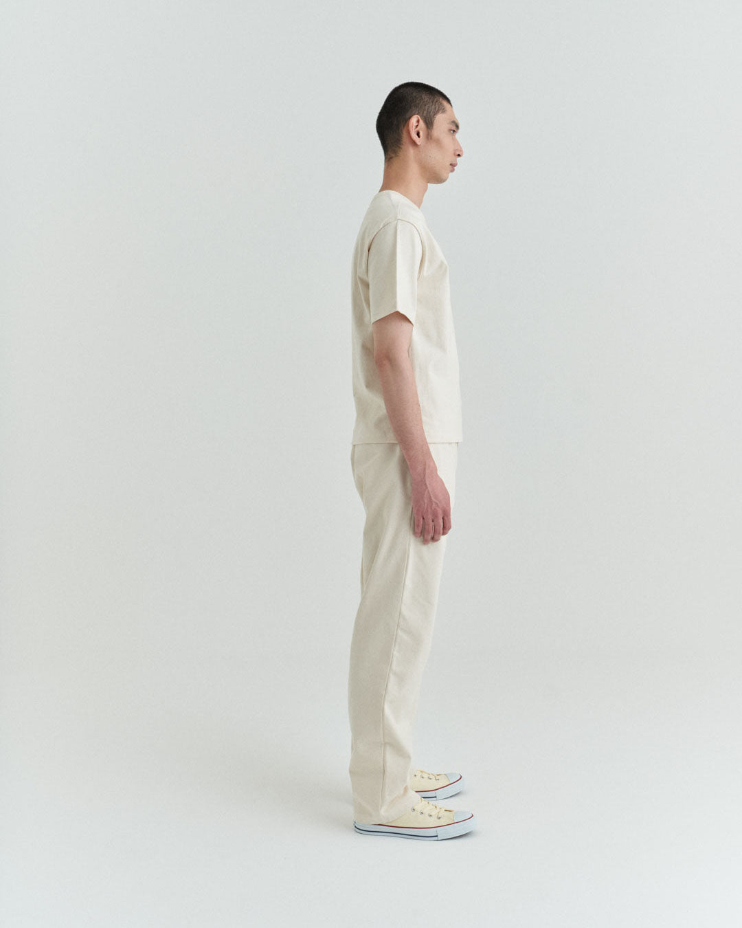 後ポケットはパッチポケットではなく片玉縁ポケットにして、すっきりとしたヒップ周り。