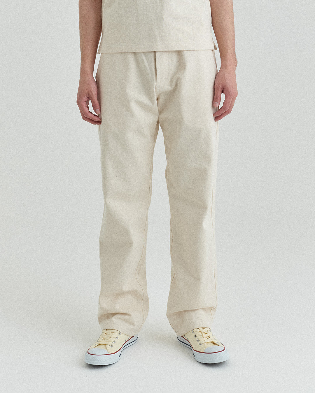 ストレートシルエットのパンツでウエストは28,30,32,34インチのサイズを用意。男女ともに定番で着用できるアイテム。