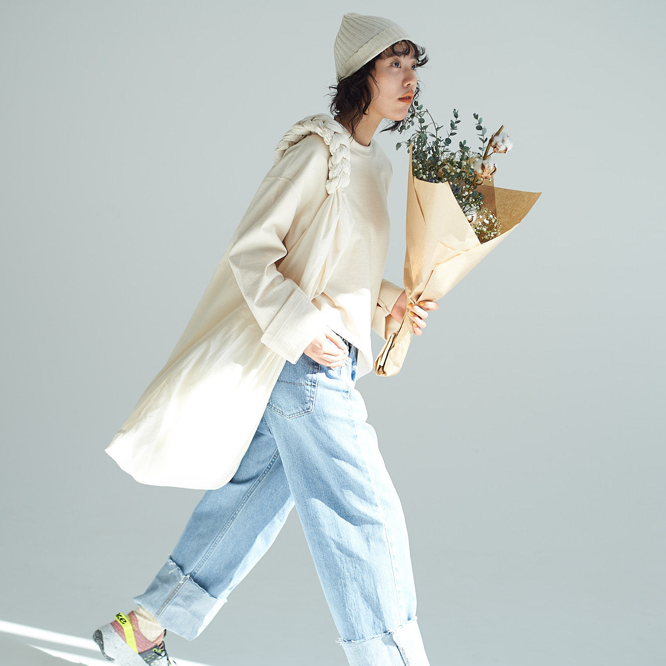 直線構造のバッグを、持ち手部分で大きく編み込んだデザイン性のあるバッグに。しっかりとした持ち手と大容量のバッグで日常的な機能性とファッション性を兼ね備えたデザイン。シンプルなコーディネートの中にこのバッグを持つだけでスタイリングをシメて、さりげなくおしゃれな1アイテム。