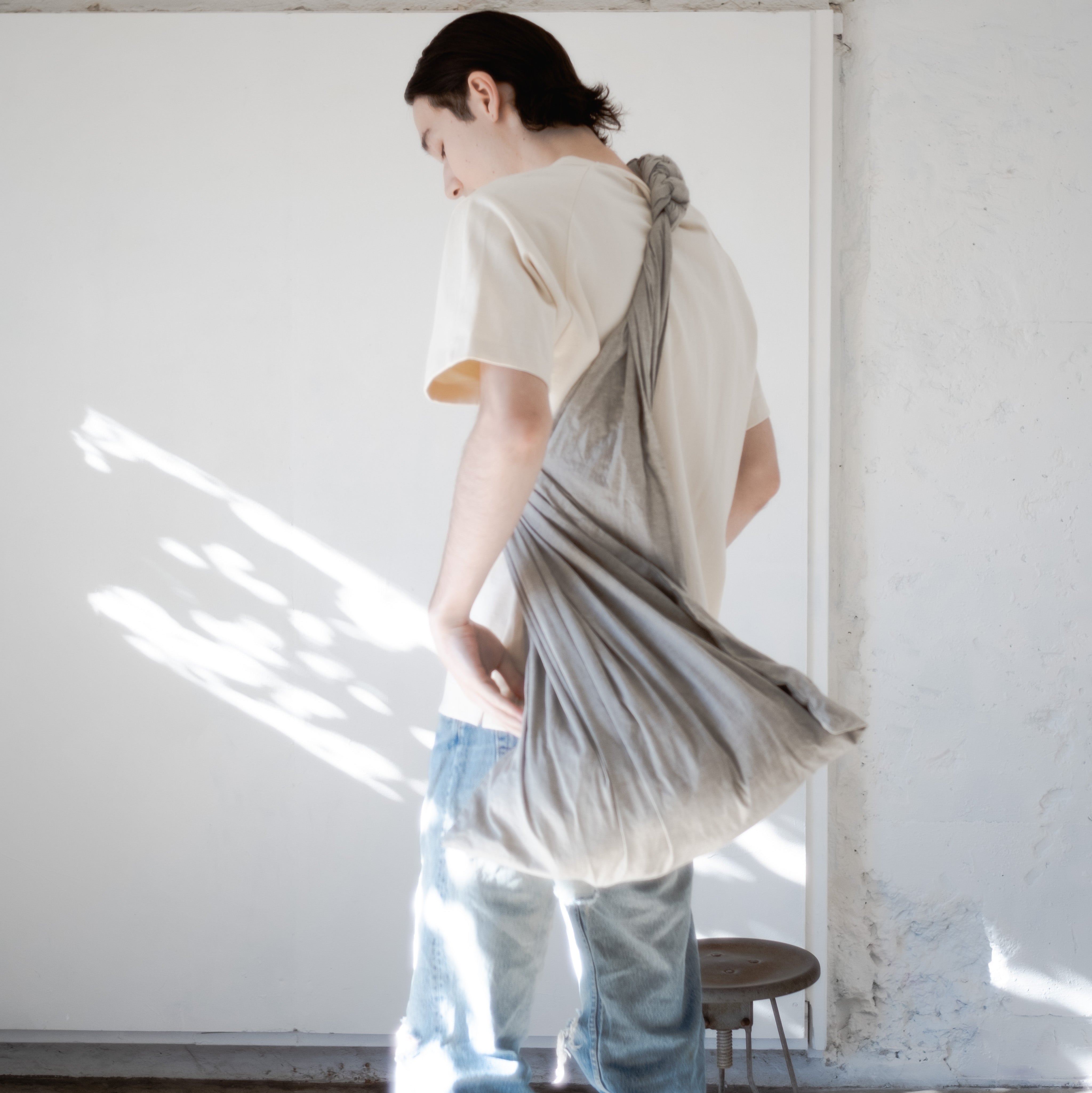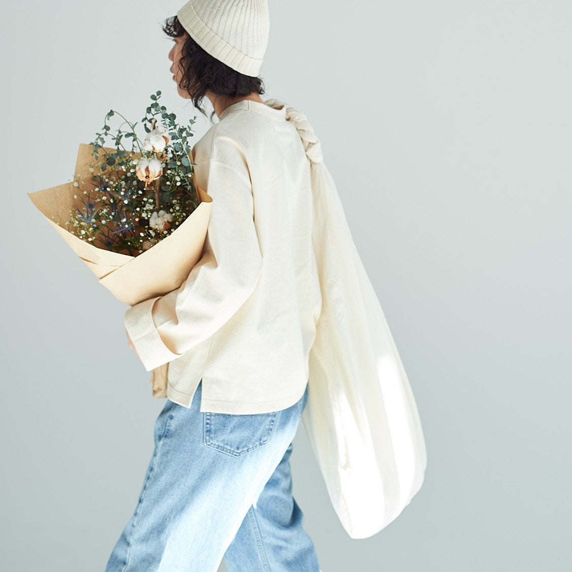 オーガニックコットン100%のきなりとコットンの綿の状態で自然の色がついている炭黒の2色を用意。平織の密度ある素材でしっかりとした素材感ながら柔らかさもあり使い込むほどに手放せないバッグ。