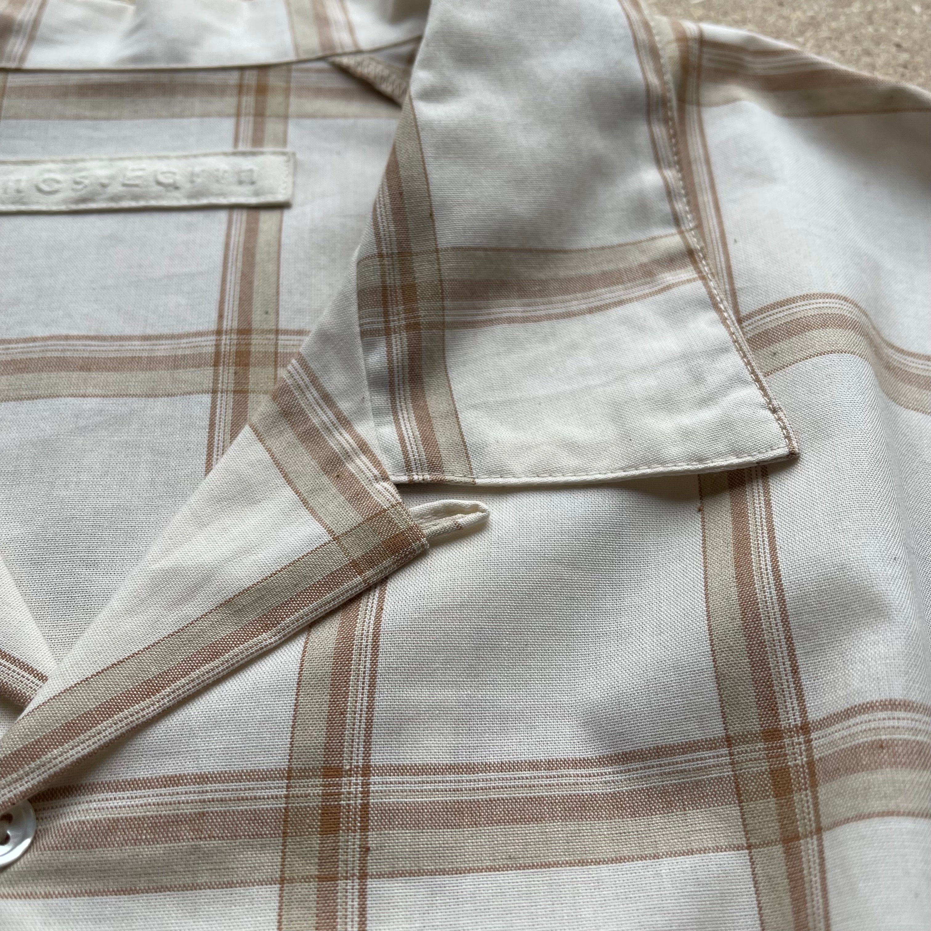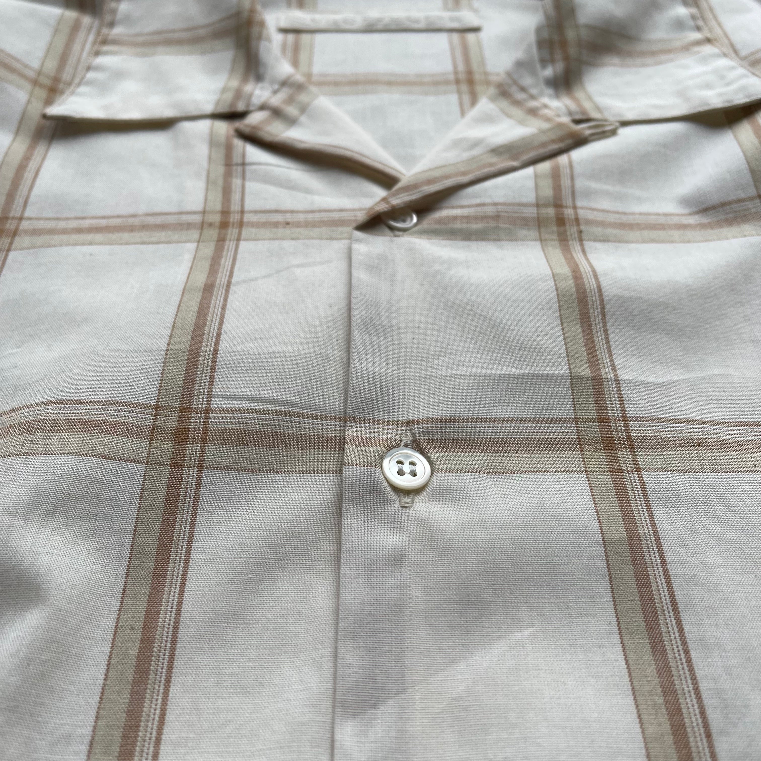 オーガニックコットン本来の色でチェック柄を表現した男女ともに着れるSyncs.Earth定番のオープンカラーシャツ